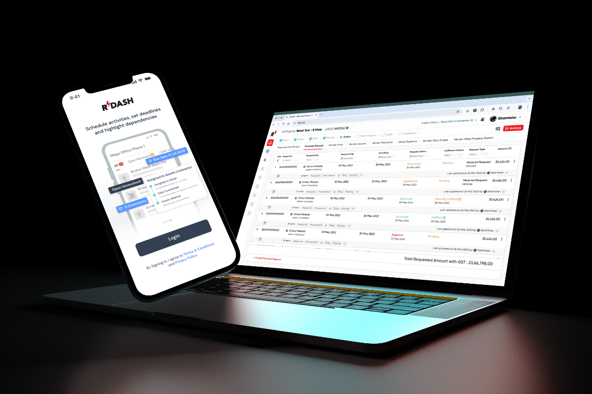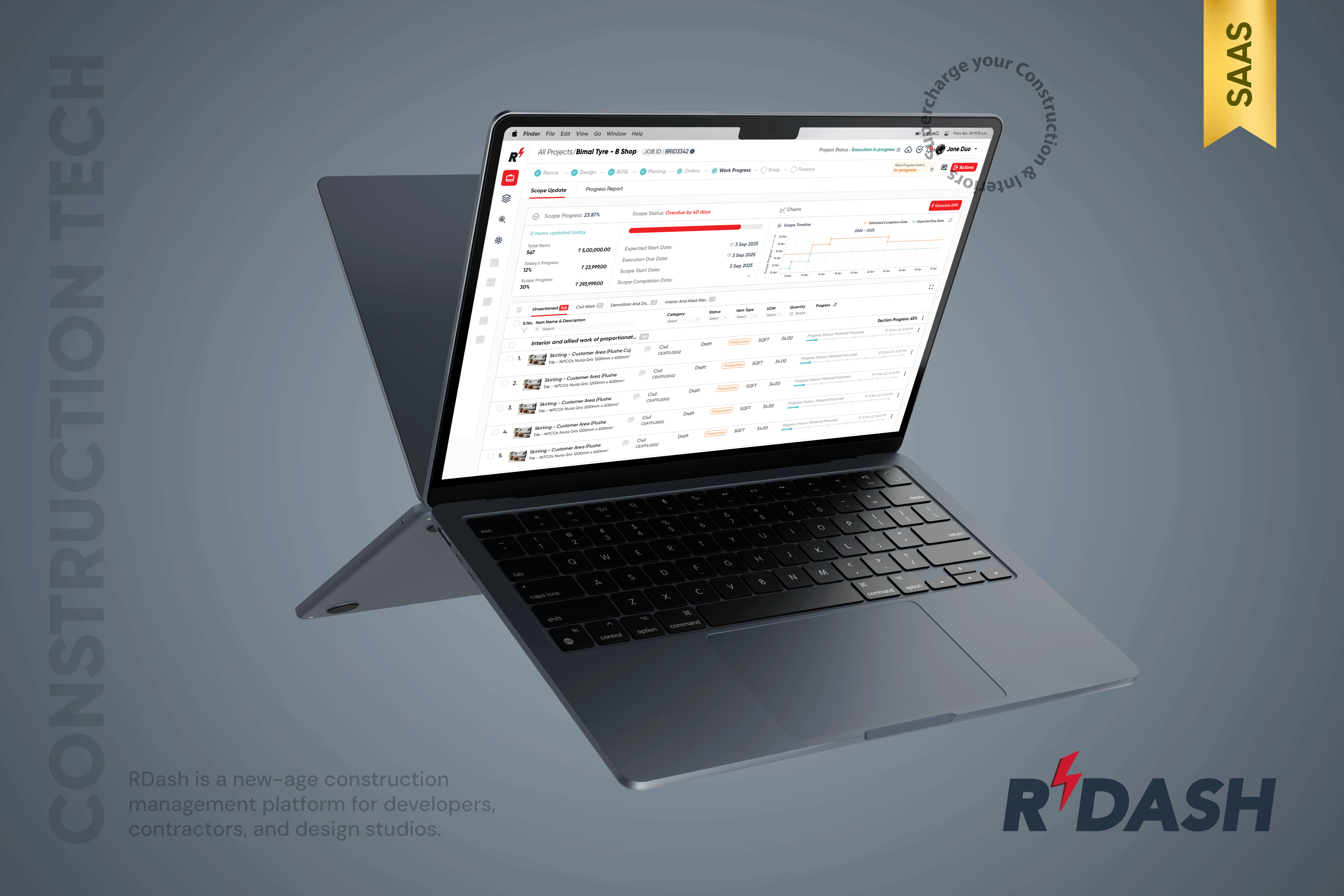 At R-Dash, a construction management platform, I led UI/UX design from the ground up. I crafted intuitive workflows that automated project management—from surveys and designs to BOQs and vendor allocation—enabling seamless collaboration among developers, contractors, and design studios through a unified digital platform.